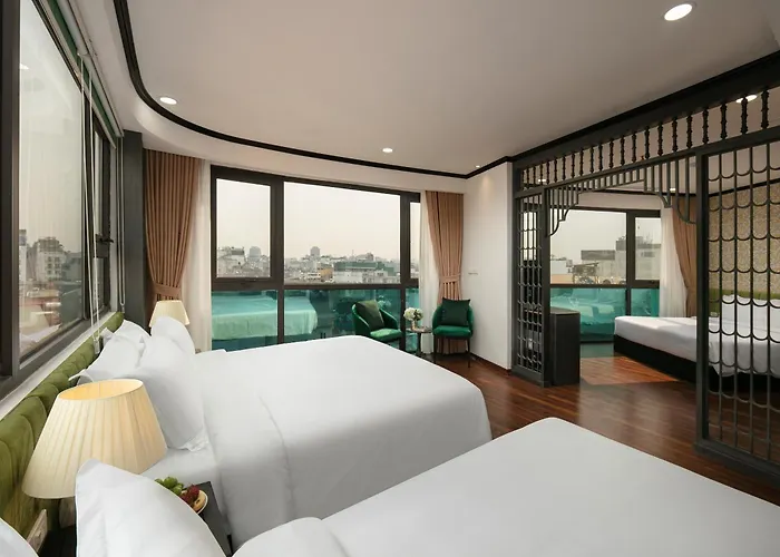 ハノイ市にあるPlaza Suite Hotel & Spaは毎日作りたてのビュッフェスタイルの朝食を提供しています。 Kafevilleなどの近くのレストランはハノイ市のホテルすぐ近くです。